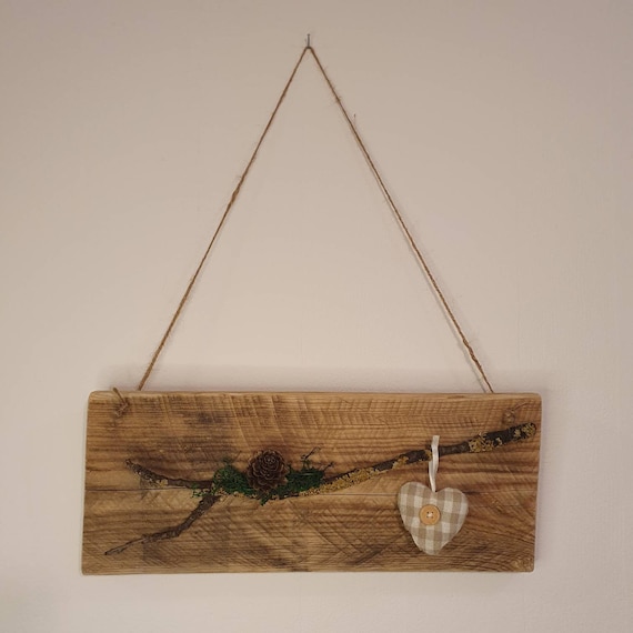 Holz aus Europalette trifft auf Naturbelassene Materialien. Das Schild wurde zugesägt und anschließend geschliffen. Der Zweig wurde aus seiner Natur heraus so belassen. Der Zapfen mit einem le...