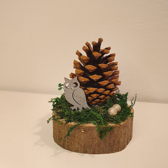 Der Hingucker für die Weihnachtszeit. Ob bei dir als Deko für Tisch oder Schrank oder als Geschenk/Mitbringsel in der Weihnachtszeit. Der Zapfen ist auf Moos gebettet und ein Holzfuß dient zu...
