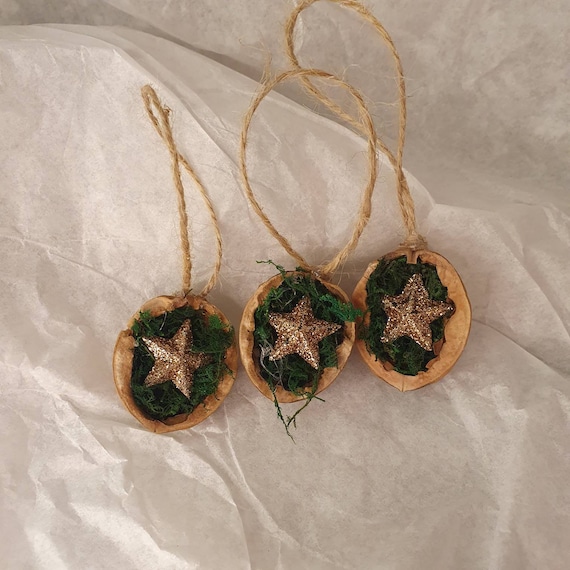 Du bist noch auf der Suche nach Tannenbaumschmuck? Dann verziere sie mit unseren kleinen Christbaumanhänger aus Walnüssen. Es handelt sich bei jedem Set um Einzelstücke, die von Hand geferti...